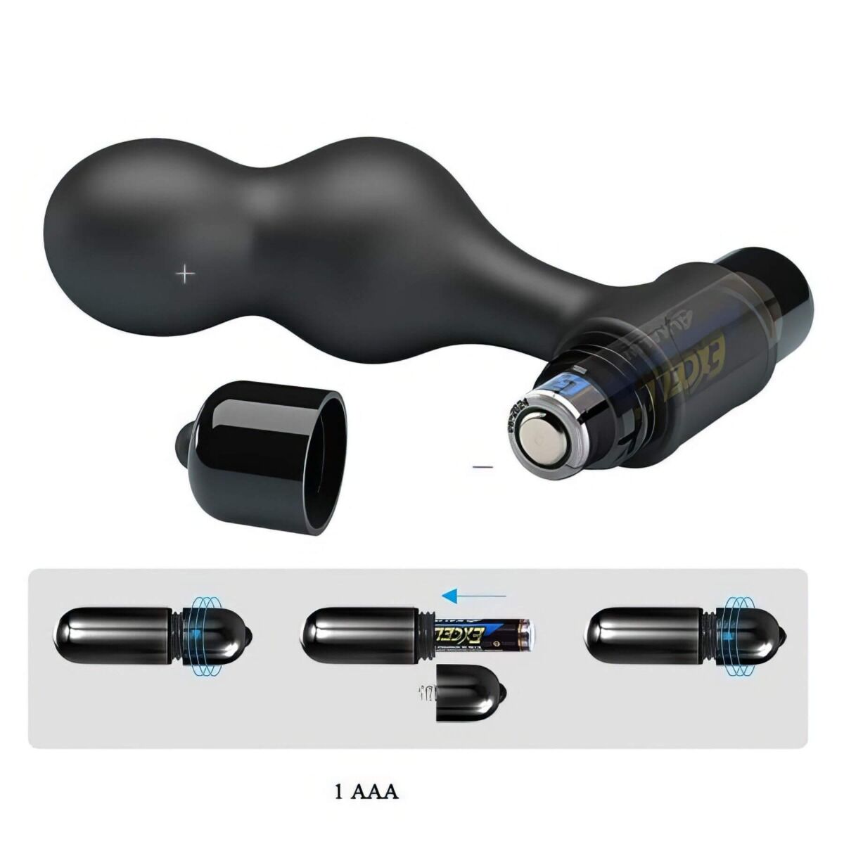 Усередині — 10 режимів вібрації: від рівного м’якого тремтіння до пульсуючих та наростаючих ритмів. Кнопка керування розташована в основі вібропулі, живлення йде від однієї батарейки AAA. Це зручно, якщо любиш автономні іграшки: не потрібно шукати дроти, достатньо мати запасну батарейку. Вібрація відчувається по всій довжині пробки, але найбільш інтенсивно — в області кульок, де вона і має працювати.