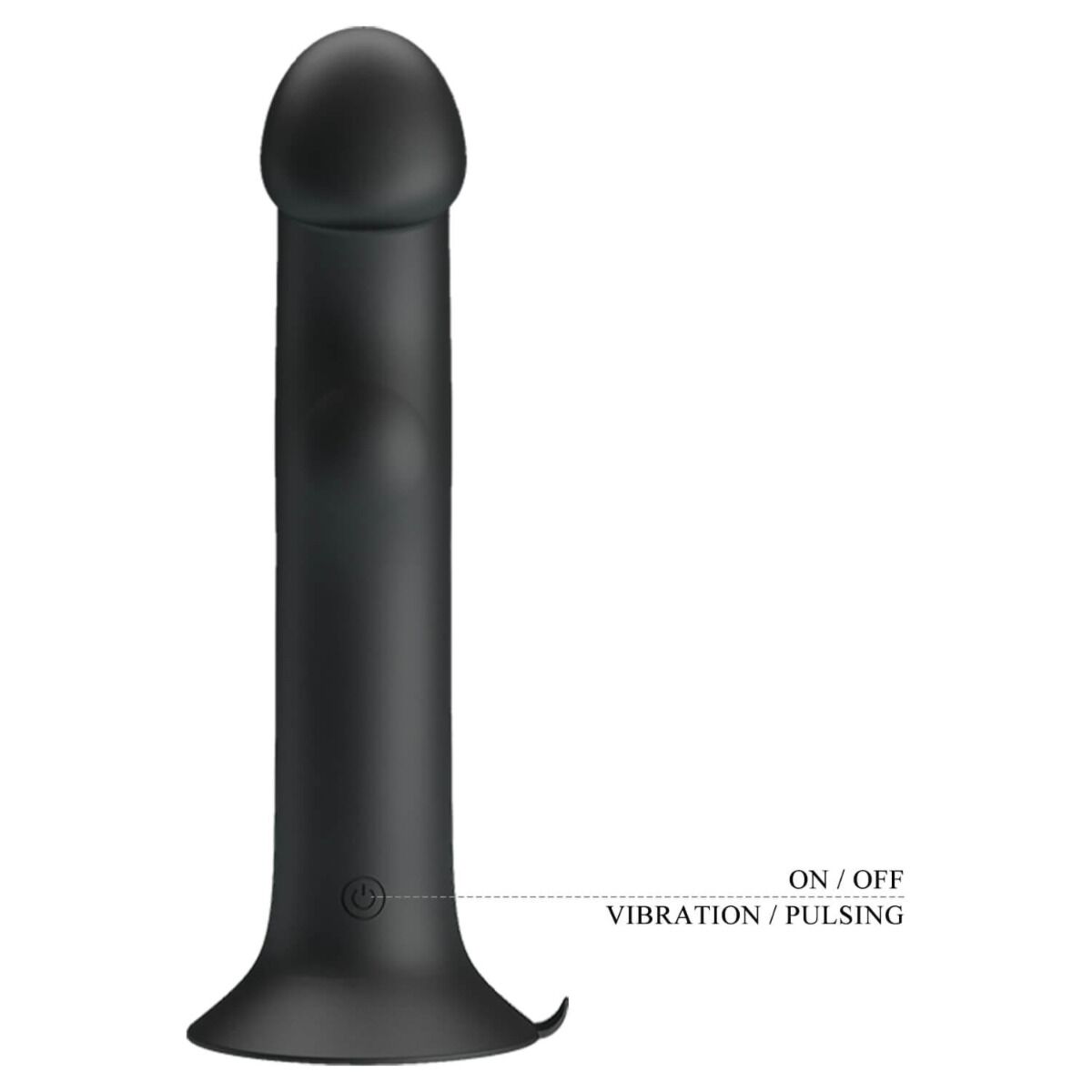 Реалістичний вібратор на присосці Pretty Love Murray з пульсацією — це варіант «два в одному»: і надійний чорний фалоімітатор для глибокого проникнення, і повноцінний девайс з потужною вібрацією та пульсуючими режимами. Чітко окреслена головка, прямий стовбур із легким потовщенням посередині й широка основа з присоскою дають відчуття масивного, упевненого члена, який тримається там, де ти його зафіксуєш.