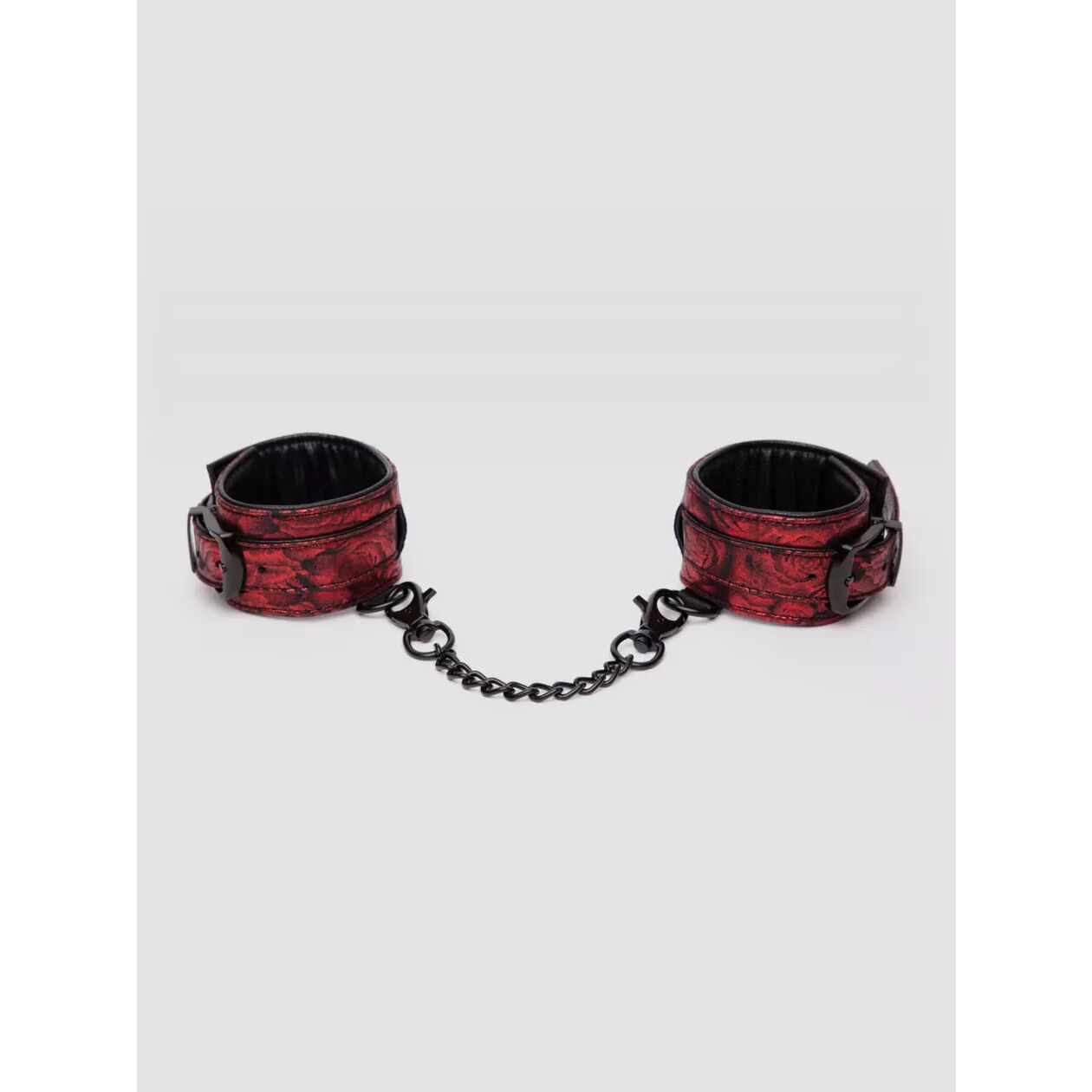 Створіть свою власну мізансцену з Крістіаном та Анною за допомогою наручних манжетів Sweet Anticipation. Зроблені з м'якою набивкою з гарної штучної шкіри з малюнком троянди у чорно-червоній кольоровій гамі, вони обіцяють чуттєвість та м'якість, але водночас забезпечують ефективну стриманість.