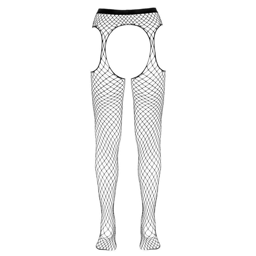Ці чорні панчохи-колготки з підв’язками — про той момент, коли хочеться не “просто красиво”, а так, щоб у партнера з’явилася пауза в голові. Грубша сітка виглядає зухвало й дуже тілесно: вона не ховає шкіру, а ніби підкреслює її, робить ноги графічними, довшими, сміливішими. Це не ніжний романтичний аксесуар — це коротка, чітка заява: сьогодні ви граєте за своїми правилами.
